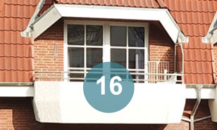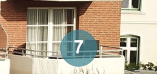 Balkone bzw. Terrassen auf die Wohnungsnummer.
